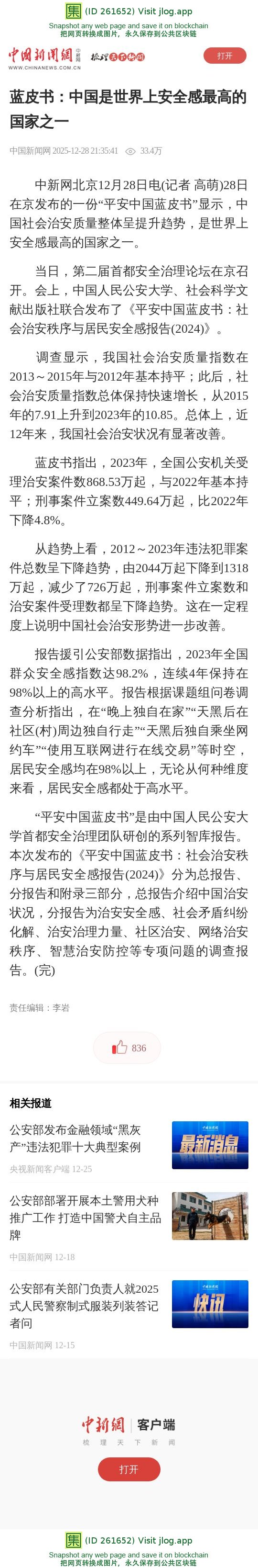 蓝皮书:中国是世界上安全感最高的国家之一