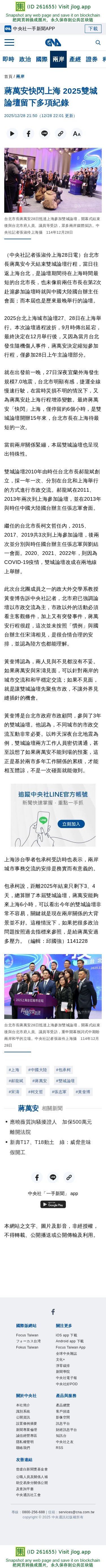 蔣萬安快閃上海 2025雙城論壇留下多項紀錄 | 兩岸 | 中央社 CNA
