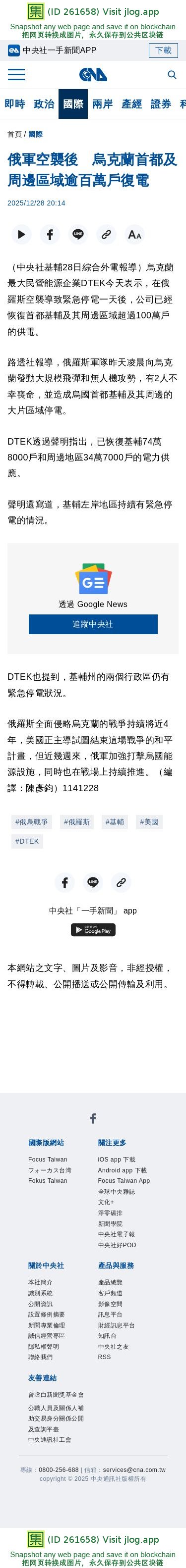 俄軍空襲後 烏克蘭首都及周邊區域逾百萬戶復電 | 國際 | 中央社 CNA