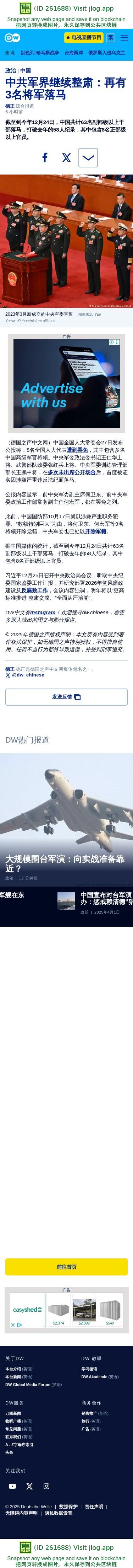 中共军界继续整肃:再有3名将军落马 – DW – 2025年12月29日