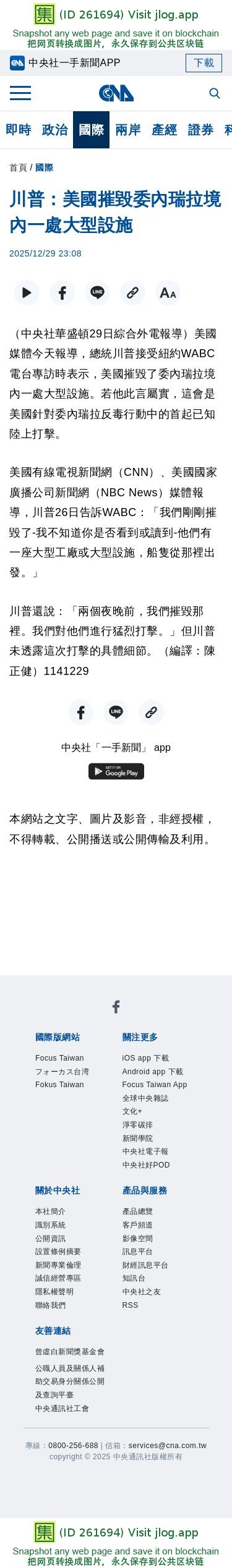 川普:美國摧毀委內瑞拉境內一處大型設施 | 國際 | 中央社 CNA