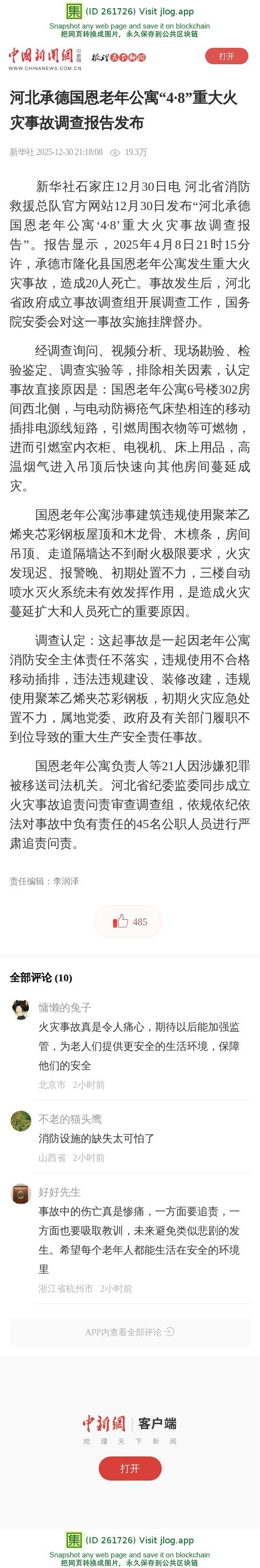河北承德国恩老年公寓“4·8”重大火灾事故调查报告发布