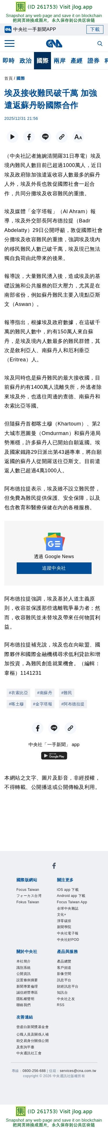 埃及接收難民破千萬 加強遣返蘇丹盼國際合作 | 國際 | 中央社 CNA