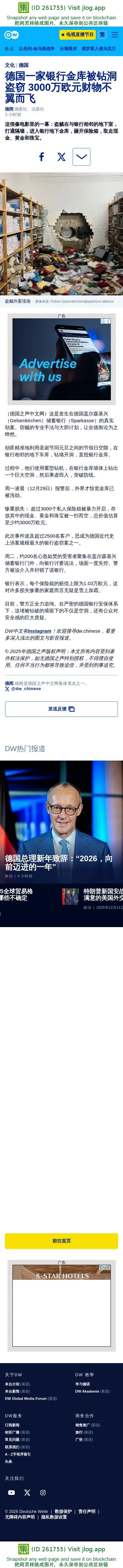 德国一家银行金库被钻洞盗窃 3000万欧元财物不翼而飞 – DW – 2025年12月31日