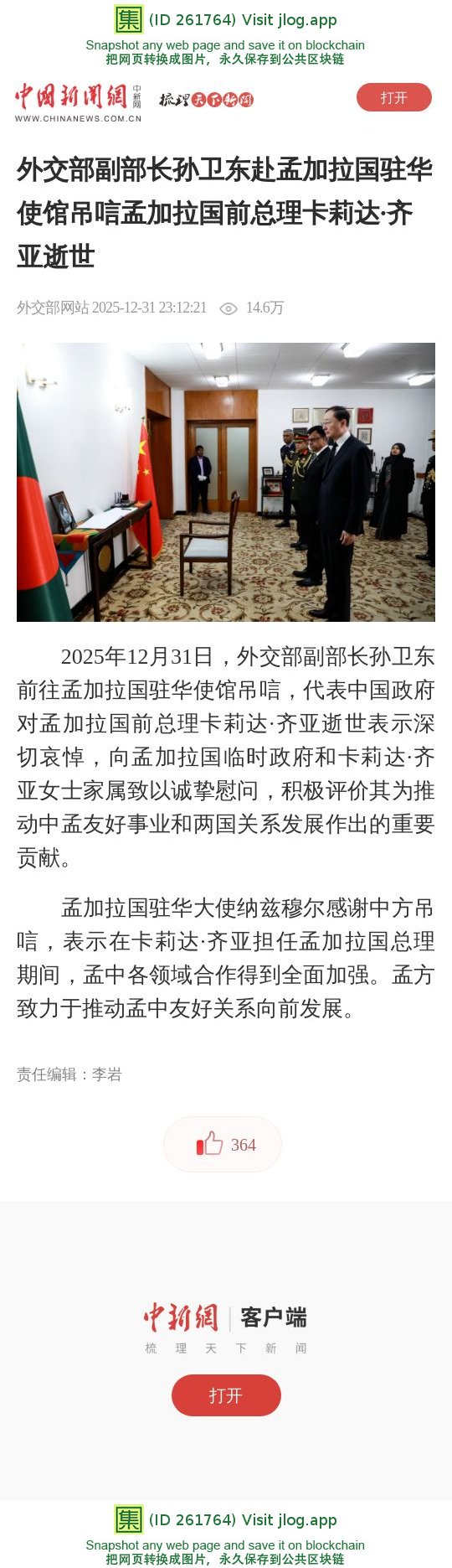 外交部副部长孙卫东赴孟加拉国驻华使馆吊唁孟加拉国前总理卡莉达·齐亚逝世