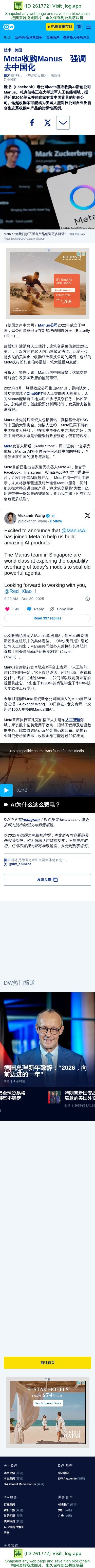 Meta收购Manus 强调去中国化 – DW – 2025年12月31日