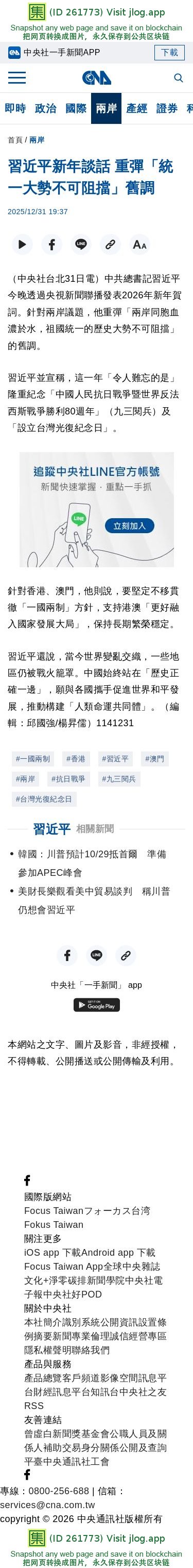 習近平新年談話 重彈「統一大勢不可阻擋」舊調 | 兩岸 | 中央社 CNA