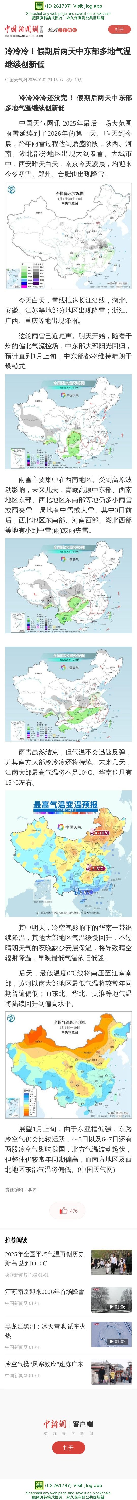 冷冷冷!假期后两天中东部多地气温继续创新低