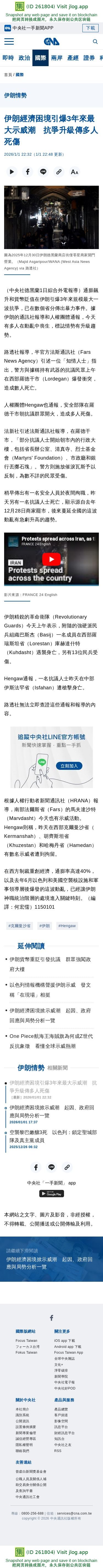 伊朗經濟困境引爆3年來最大示威潮 抗爭升級傳多人死傷 | 國際 | 中央社 CNA