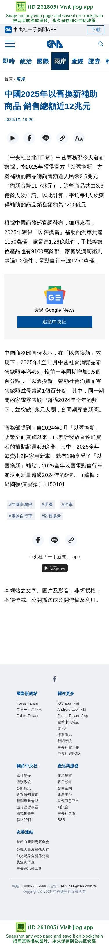 中國2025年以舊換新補助商品 銷售總額近12兆元 | 兩岸 | 中央社 CNA