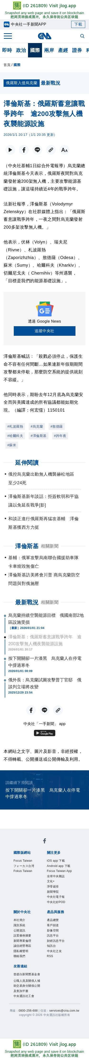澤倫斯基:俄羅斯蓄意讓戰爭跨年 逾200攻擊無人機夜襲能源設施 | 國際 | 中央社 CNA