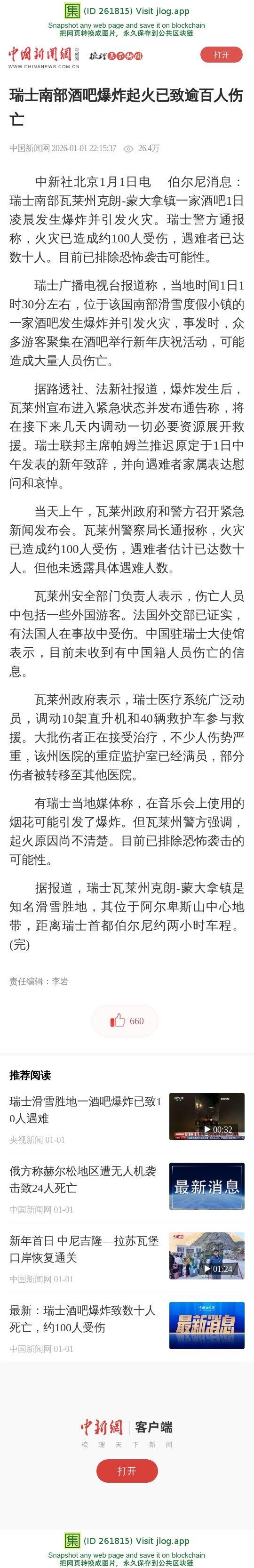 瑞士南部酒吧爆炸起火已致逾百人伤亡