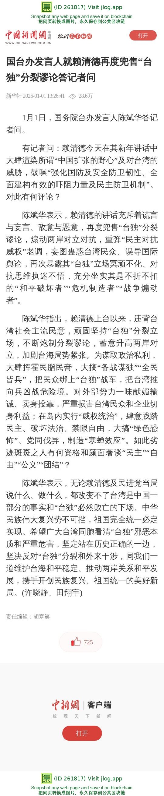 国台办发言人就赖清德再度兜售“台独”分裂谬论答记者问