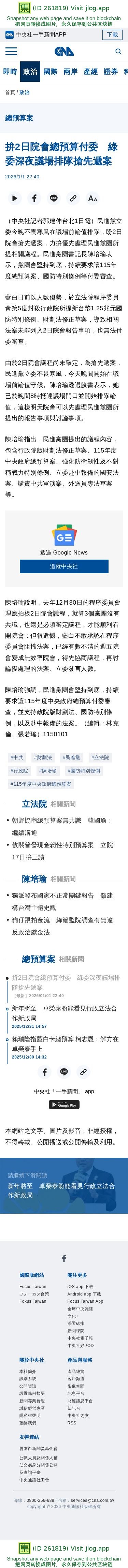 拚2日院會總預算付委 綠委深夜議場排隊搶先遞案 | 政治 | 中央社 CNA