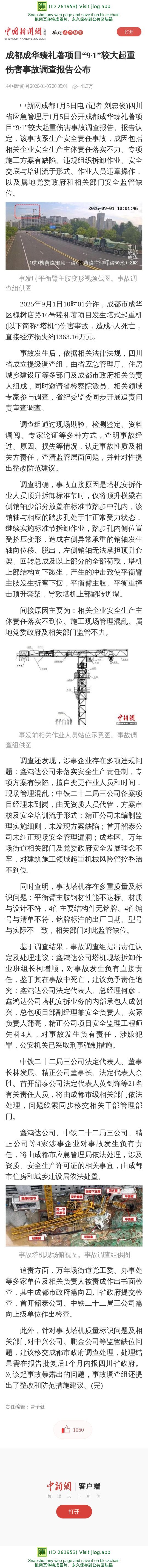 成都成华臻礼著项目“9·1”较大起重伤害事故调查报告公布