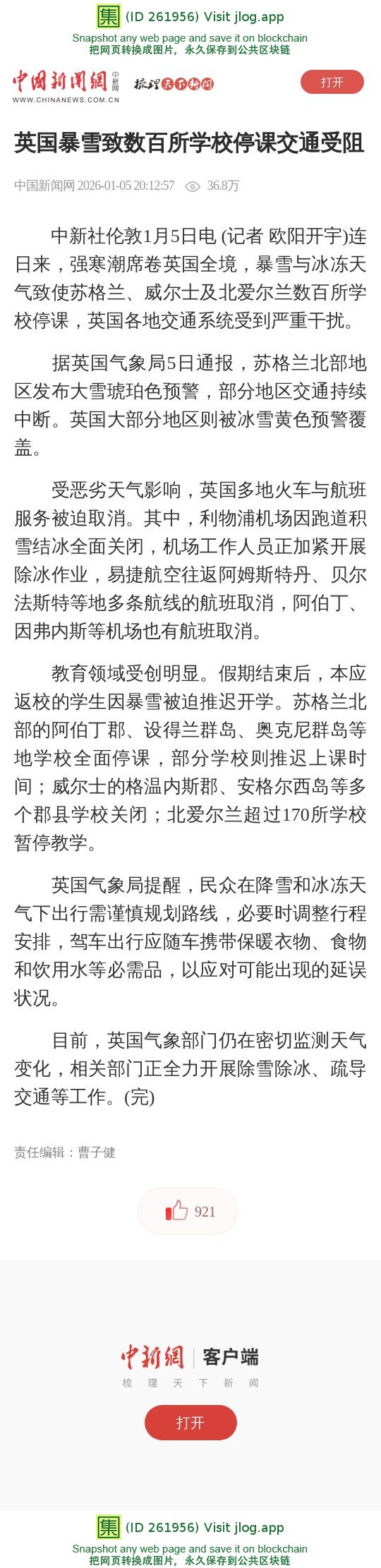 英国暴雪致数百所学校停课交通受阻