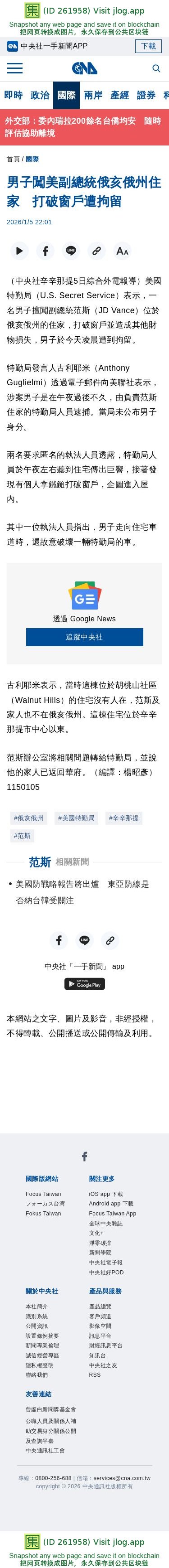 男子闖美副總統俄亥俄州住家 打破窗戶遭拘留 | 國際 | 中央社 CNA