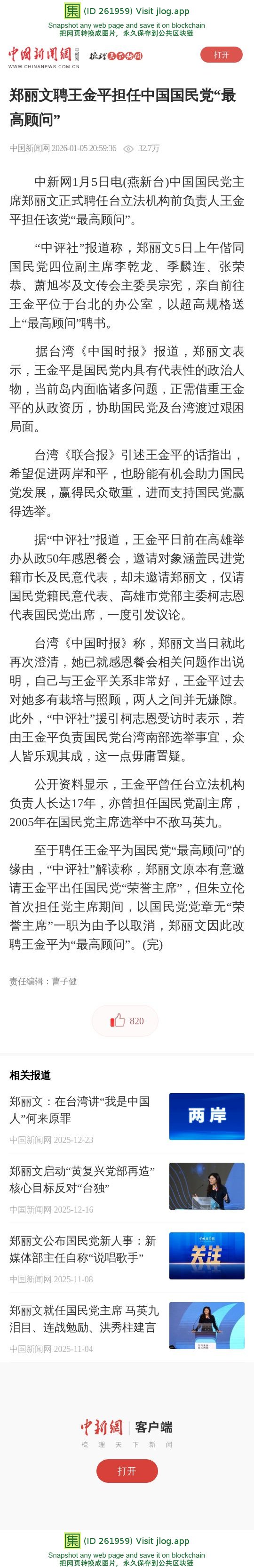 郑丽文聘王金平担任中国国民党“最高顾问”