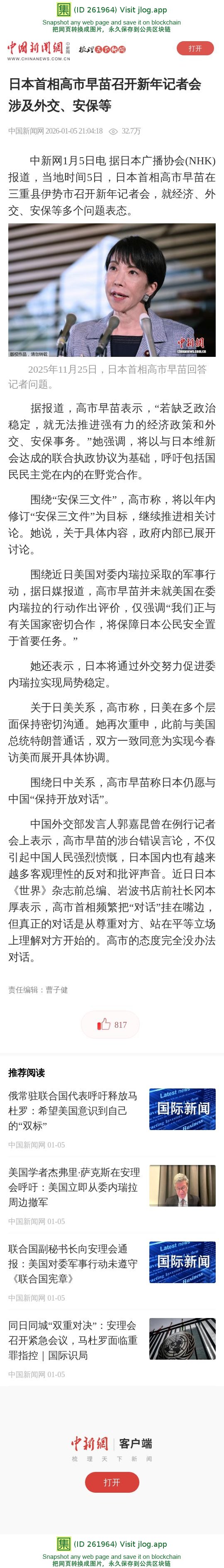 日本首相高市早苗召开新年记者会 涉及外交、安保等