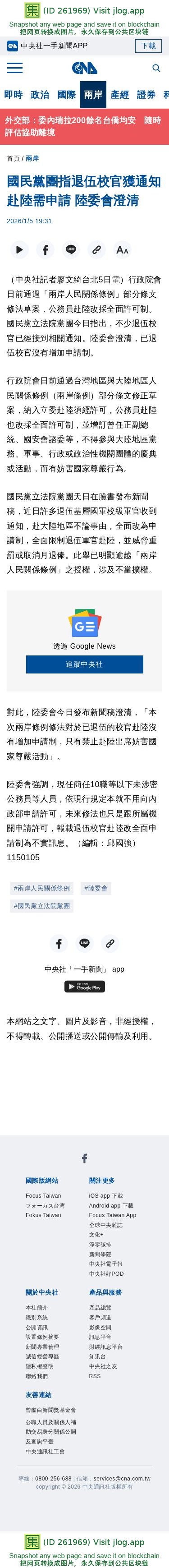 國民黨團指退伍校官獲通知赴陸需申請 陸委會澄清 | 兩岸 | 中央社 CNA