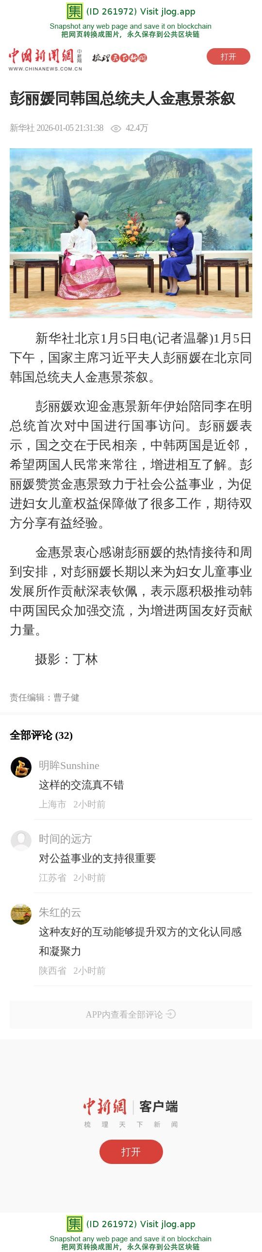彭丽媛同韩国总统夫人金惠景茶叙