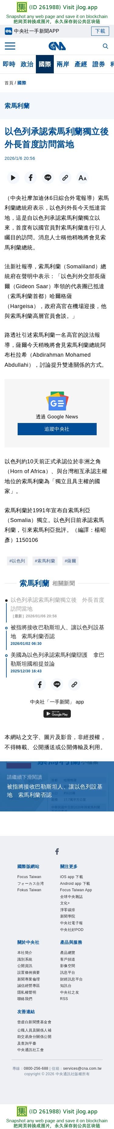 以色列承認索馬利蘭獨立後 外長首度訪問當地 | 國際 | 中央社 CNA