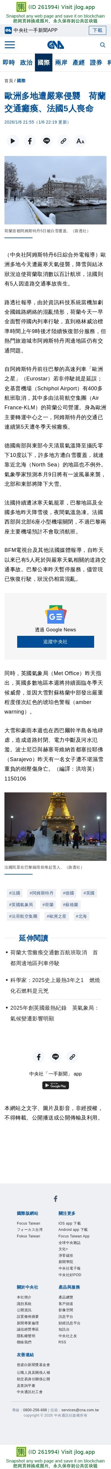 歐洲多地遭嚴寒侵襲 荷蘭交通癱瘓、法國5人喪命 | 國際 | 中央社 CNA