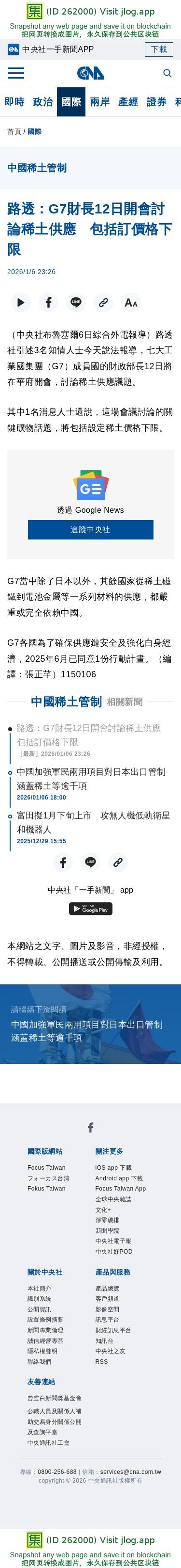 路透:G7財長12日開會討論稀土供應 包括訂價格下限 | 國際 | 中央社 CNA