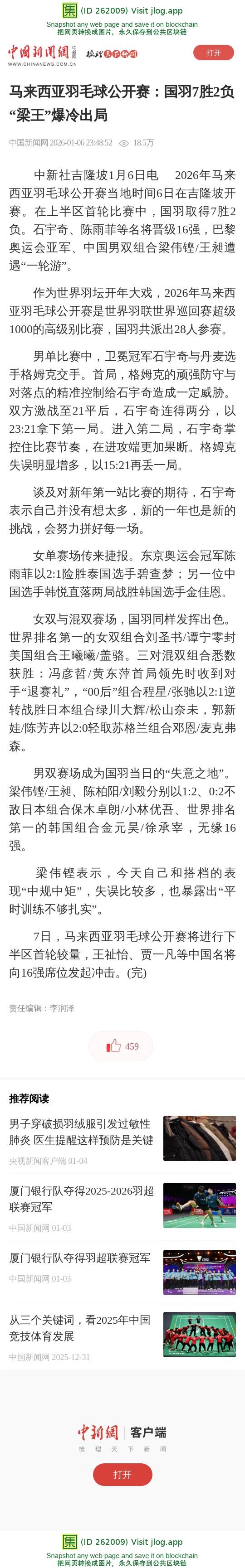 马来西亚羽毛球公开赛:国羽7胜2负 “梁王”爆冷出局