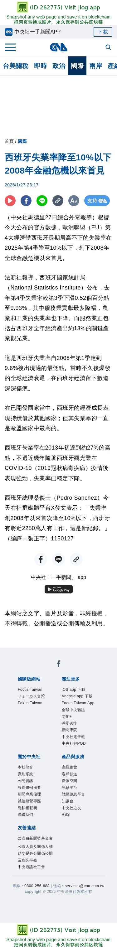西班牙失業率降至10%以下 2008年金融危機以來首見 | 國際 | 中央社 CNA