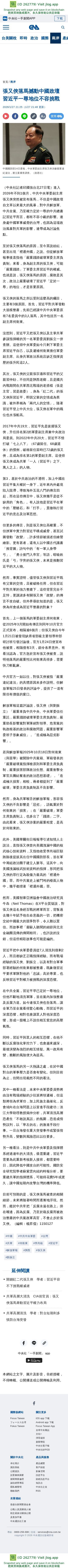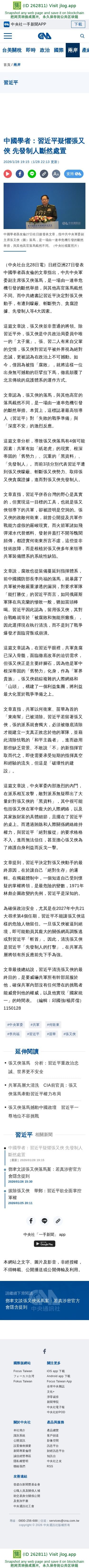 中國學者:習近平疑懼張又俠 先發制人斷然處置 | 兩岸 | 中央社 CNA