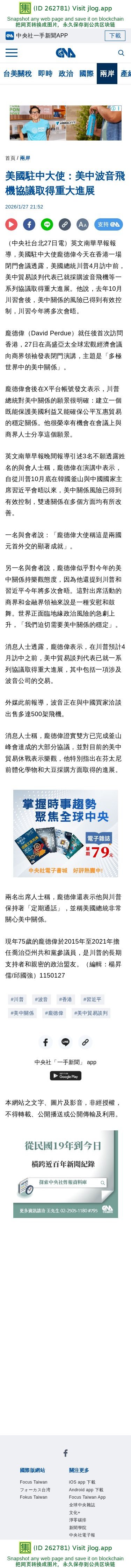 美國駐中大使:美中波音飛機協議取得重大進展 | 兩岸 | 中央社 CNA