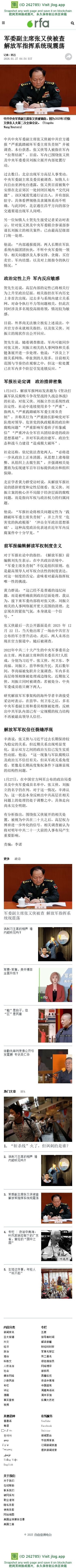 军委副主席张又侠被查 解放军指挥系统现震荡 – 普通话主页