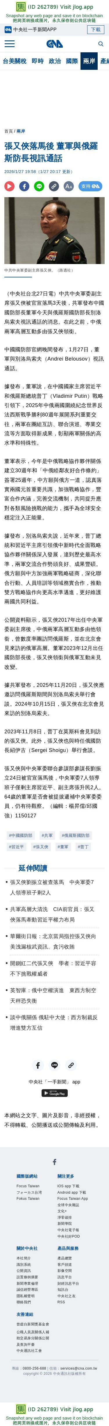 張又俠落馬後 董軍與俄羅斯防長視訊通話 | 兩岸 | 中央社 CNA
