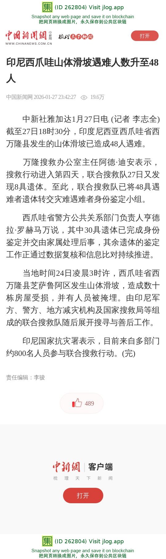 印尼西爪哇山体滑坡遇难人数升至48人