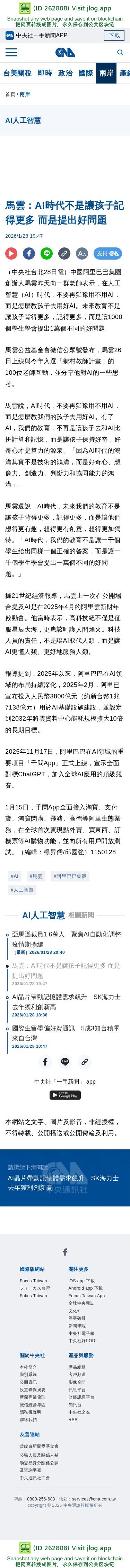 馬雲:AI時代不是讓孩子記得更多 而是提出好問題 | 兩岸 | 中央社 CNA
