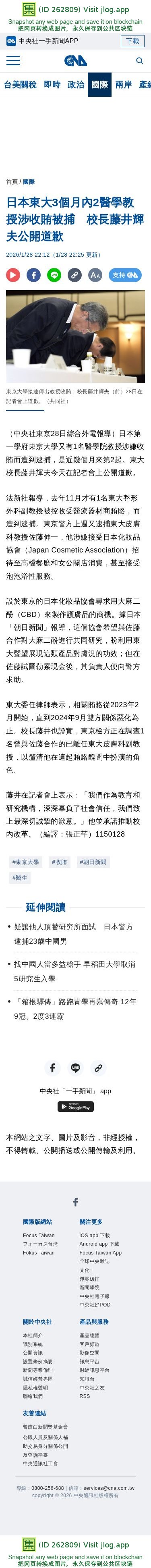 日本東大3個月內2醫學教授涉收賄被捕 校長藤井輝夫公開道歉 | 國際 | 中央社 CNA