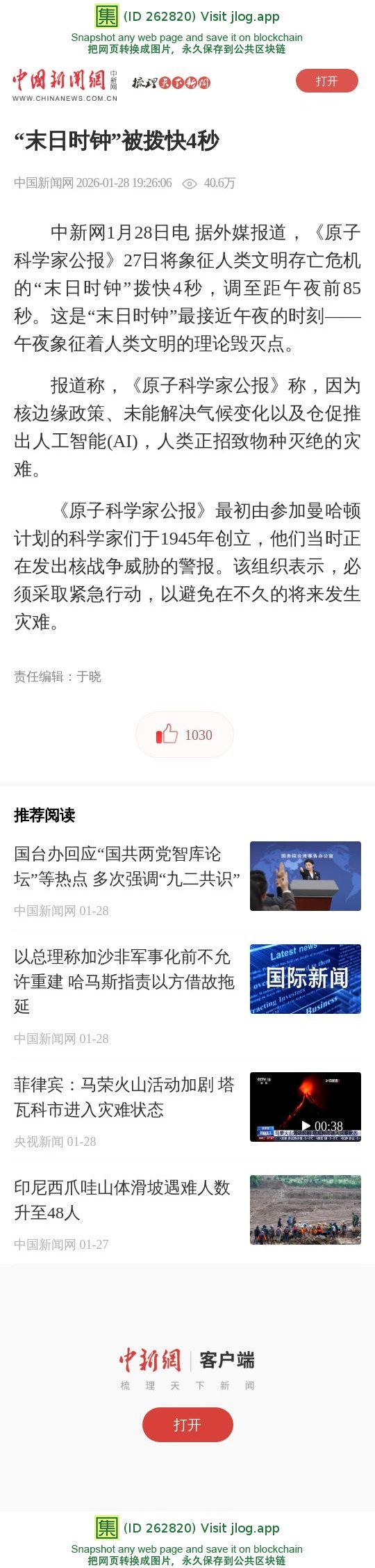 “末日时钟”被拨快4秒
