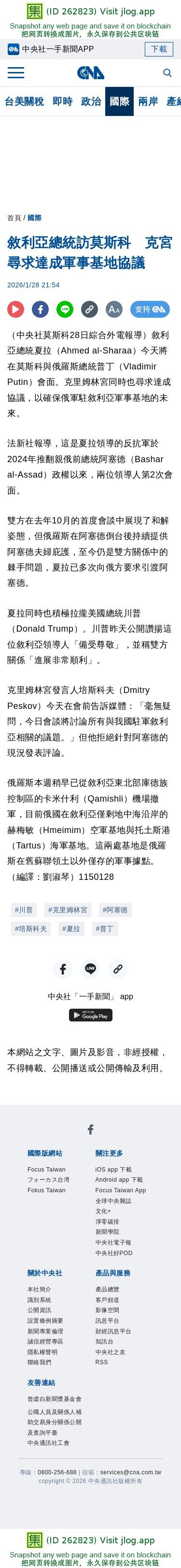敘利亞總統訪莫斯科 克宮尋求達成軍事基地協議 | 國際 | 中央社 CNA