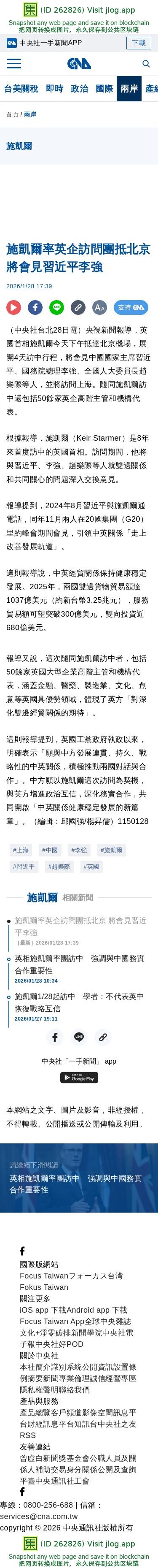 施凱爾率英企訪問團抵北京 將會見習近平李強 | 兩岸 | 中央社 CNA
