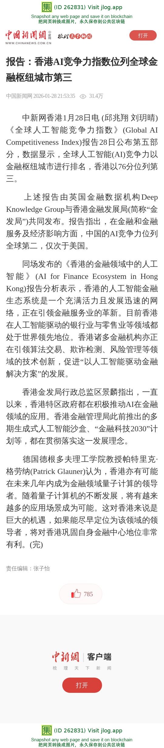 报告:香港AI竞争力指数位列全球金融枢纽城市第三