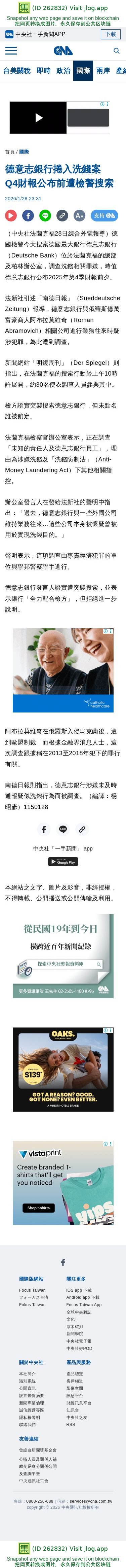 德意志銀行捲入洗錢案 Q4財報公布前遭檢警搜索 | 國際 | 中央社 CNA