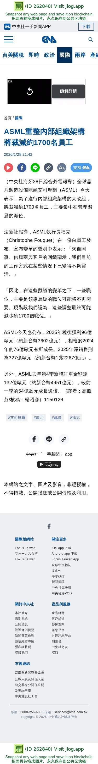 ASML重整內部組織架構 將裁減約1700名員工 | 國際 | 中央社 CNA