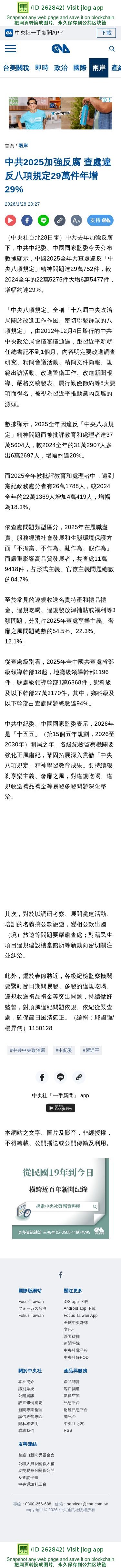 中共2025加強反腐 查處違反八項規定29萬件年增29% | 兩岸 | 中央社 CNA