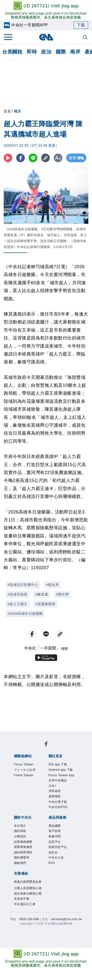 超人力霸王降臨愛河灣 陳其邁攜城市超人進場 | 地方 | 中央社 CNA