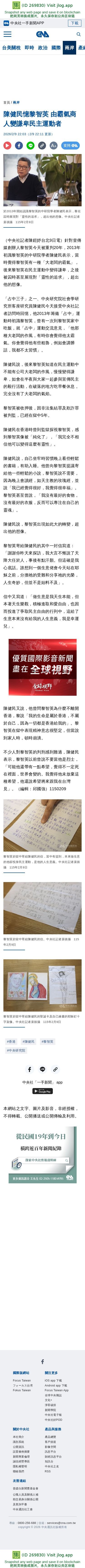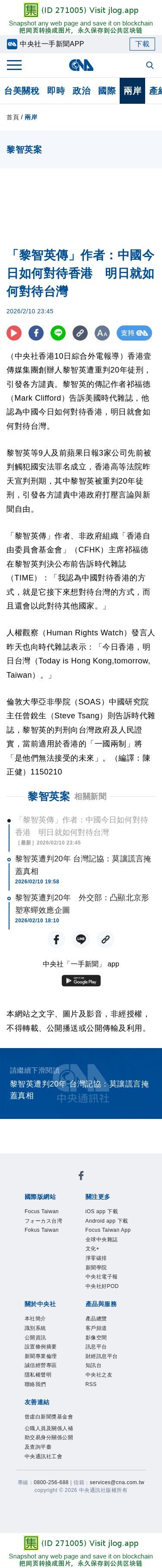 「黎智英傳」作者:中國今日如何對待香港 明日就如何對待台灣 | 兩岸 | 中央社 CNA