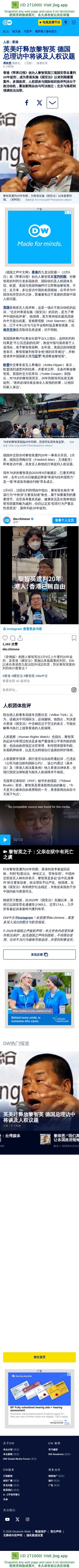 英美吁释放黎智英 德国总理访中将谈及人权议题