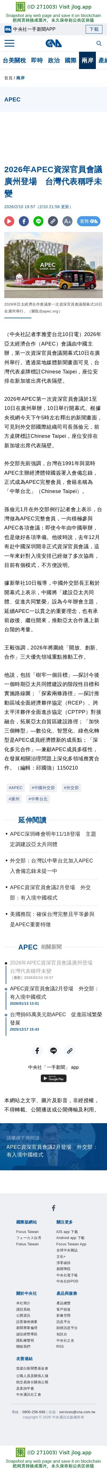 2026年APEC資深官員會議廣州登場 台灣代表稱呼未變 | 兩岸 | 中央社 CNA