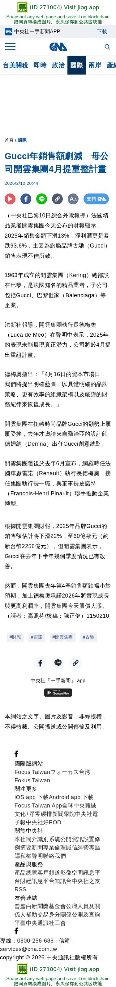 Gucci年銷售額劇減 母公司開雲集團4月提重整計畫 | 國際 | 中央社 CNA