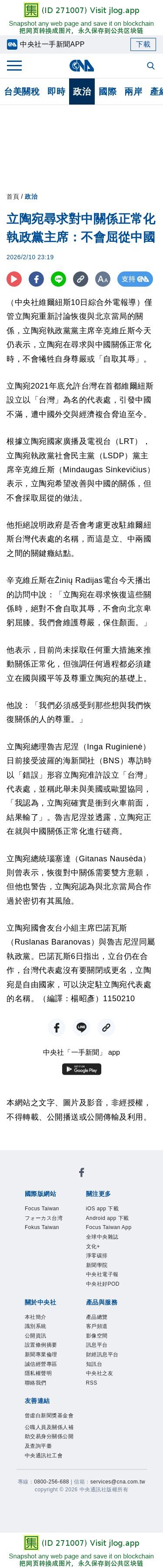 立陶宛尋求對中關係正常化 執政黨主席:不會屈從中國 | 政治 | 中央社 CNA